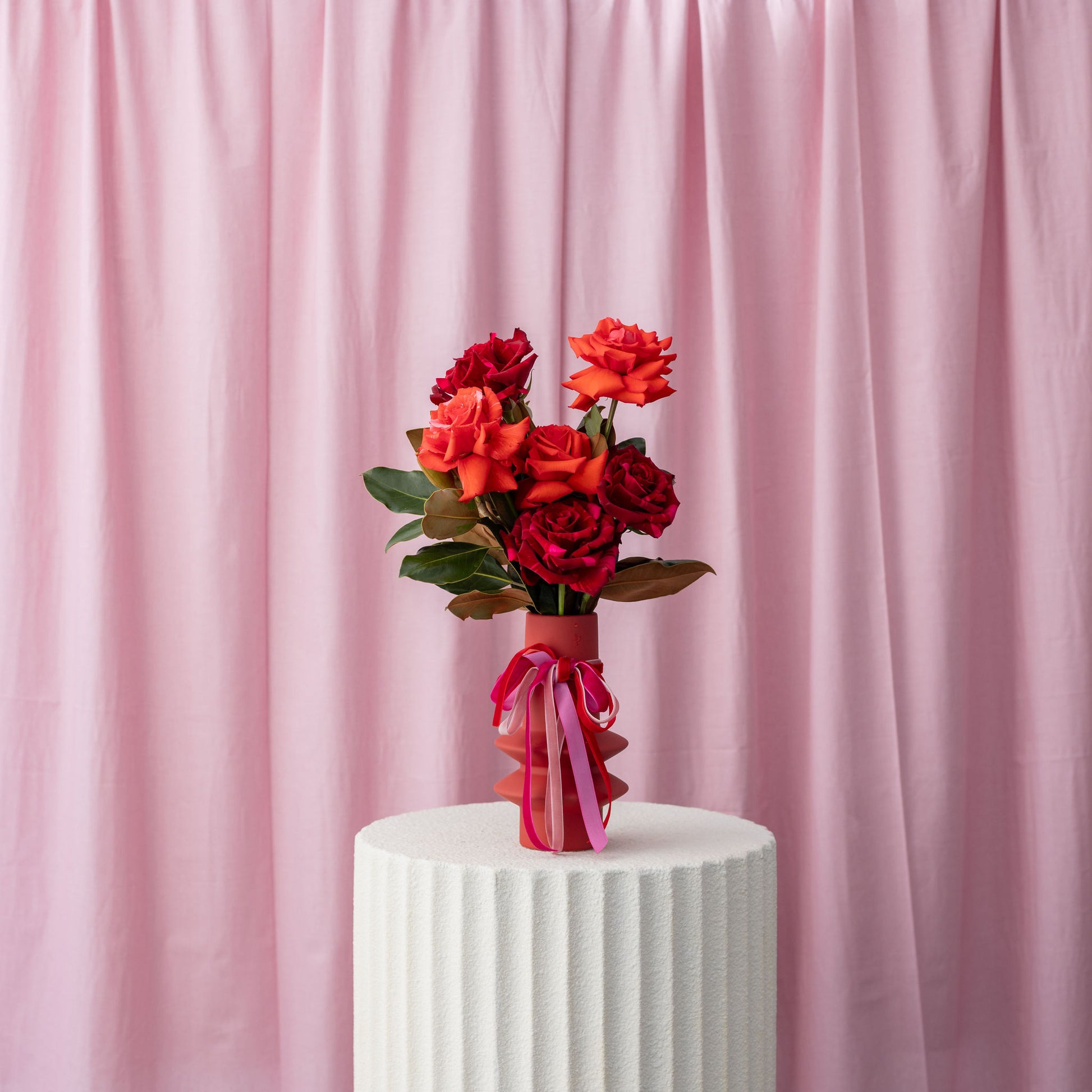 Galentine’s Red Vase Arrangement is the perfect way to celebrate soulmates, friendships, or a “just because I love you” moment. Featuring six stems of mixed red-toned roses complemented by seasonal foliage, this arrangement is thoughtfully styled in a medium sized ceramic vase. Bold, romantic, and full of heart, it’s a beautiful gesture for anyone who deserves a little love. 🌹❤️