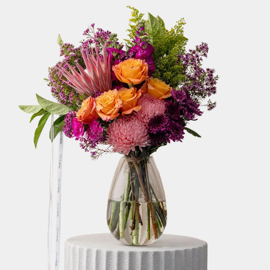 Our team prepares your blooms fresh and dispatches orders after 12 pm as part of our scheduled delivery runs. To keep deliveries efficient, orders are allocated based on the fastest possible driver route, so arrival times can vary depending on your suburb.